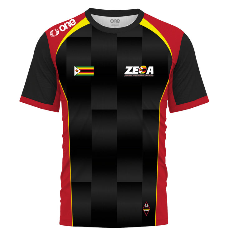 Bold, powerful, and unmistakably Zimbabwean — the ZEGA x Oneallsports Alternate Jersey captures the nation’s pride through its striking black, red, and yellow palette. The geometric panel design represents balance and discipline, essential traits for every esports athlete.